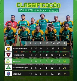 Na tabela classificativa, o Petro de Luanda comanda a prova com 33 pontos, seguido pelo 1.º de Agosto na segunda posição com 27 pontos, enquanto o Wiliete de Benguela ocupa o terceiro lugar com 26 pontos.