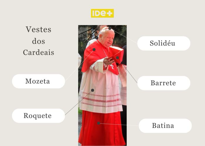 Mozeta: capa curta vermelha sobre os ombros, associada à autoridade eclesiástica.